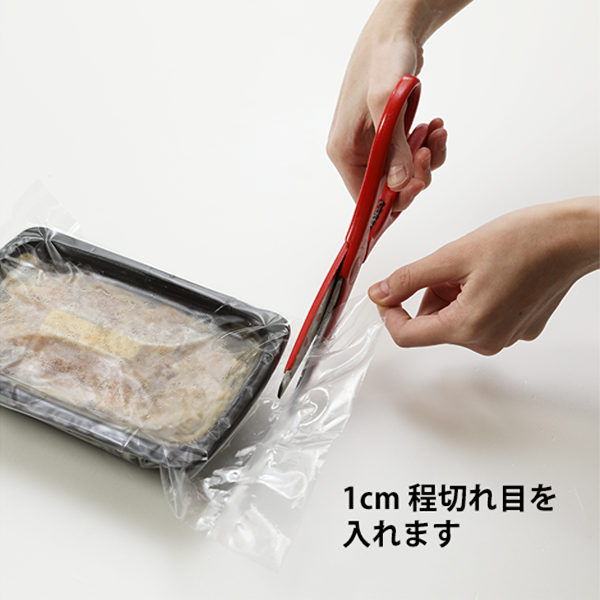 1.包装袋をはさみ等で1cmほど切れ目を入れて、電子レンジで温めてお召し上がりください。